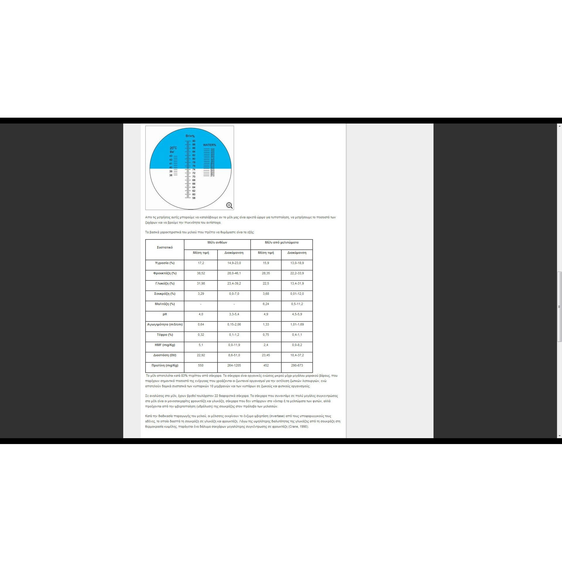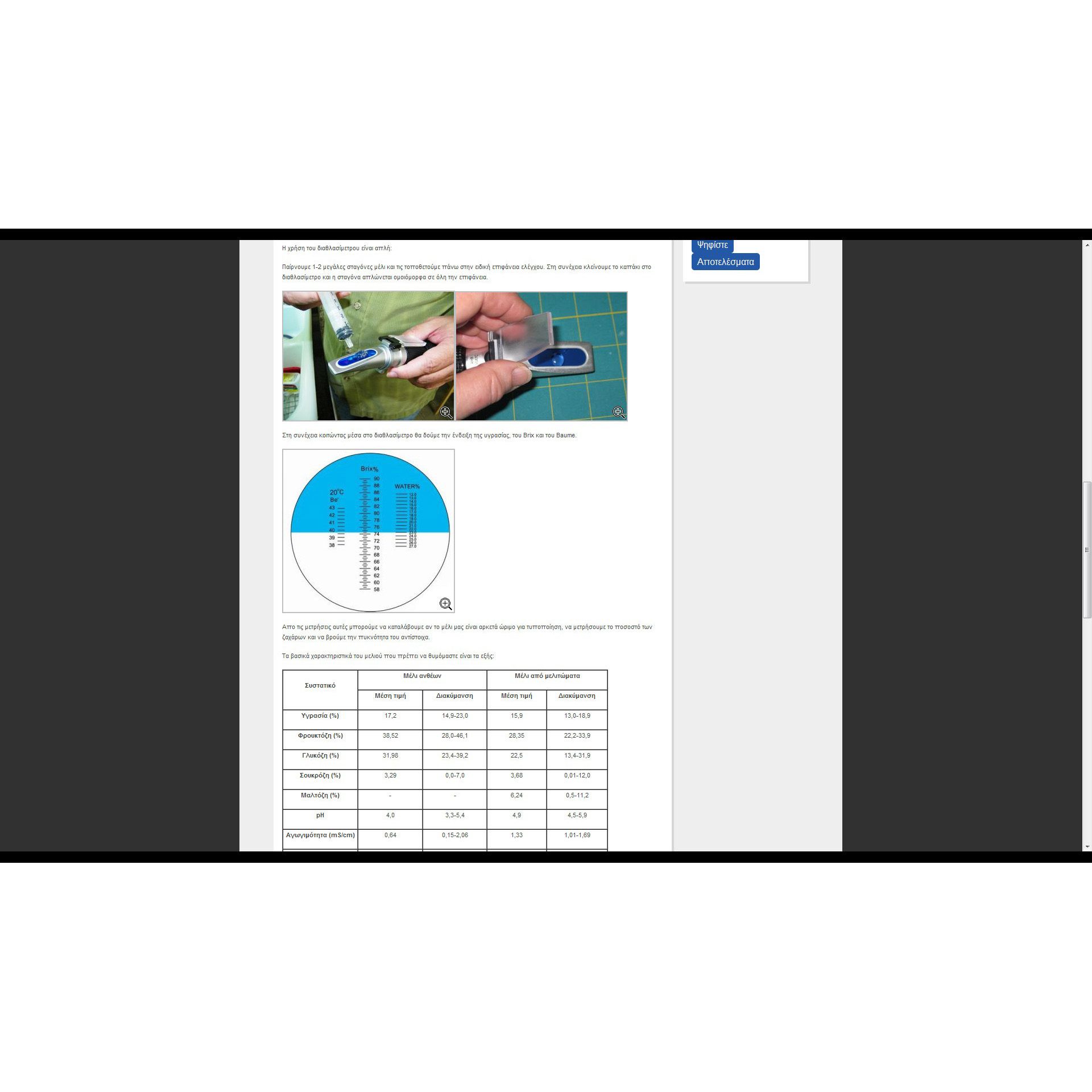 ΔΙΑΘΛΑΣΙΜΕΤΡΟ ΧΕΙΡΟΣ ΓΙΑ ΜΕΤΡΗΣΗ ΣΑΚΧΑΡΩΝ ΚΑΙ ΥΓΡΑΣΙΑΣ ΤΟΥ ΜΕΛΙΟΥ ΚΑΙ ΟΧΙ ΜΟΝΟ.ΟΔΗΓΙΕΣ ΧΡΗΣΗΣ ΣΤΙΣ ΦΩΤΟΓΡΑΦΙΕΣ.ΣΥΝΟΔΕΥΕΤΑΙ ΑΠΟ ΛΑΔΙ ΓΙΑ ΡΥΘΜΙΣΗ ΤΟΥ ΔΙΑΘΛΑΣΙΜΕΤΡΟΥ ΚΑΙ ΠΙΠΕΤΑ ΑΝΑΡΟΦΗΣΗΣ.